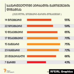 ნოემბერ-დეკემბერში მივაღწიეთ 75 %-ს. 50 %-ს ქვევით პირბადის ტარების მაჩვენებელი არის ძალიან საყურადღებო, ჩვენ კი, ბოლო 2 კვირის მონაცემებით, 42 % გვაქვს.