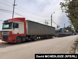 მართლაც, „აზოტის“ შესასვლელიდან დაახლოებით 100 მეტრში მძიმე სატვირთო მანქანების გრძელი რიგი დგას. საწარმოდან ამონიუმის გვარჯილა აქვთ გამოსატანი.