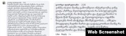 იმავე შინაარსის წერილი მიიღო გიორგი აფციაურმა, რომელიც დუშეთის რაიონს ემსახურება. რომელ კომენტართან დაკავშირებით ედავება დამსაქმებელი, არც აფციაურთან გაგზავნილ წერილში წერია.