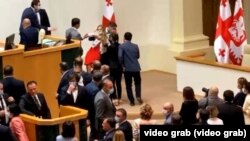 ისტერიამდე მისული დესტრუქცია, ტრიბუნის დაბლოკვა, მაგიდაზე ფეხით შემდგარი, სპიკერატისკენ გაქანებული და მანდატურთან მოჭიდავე დეპუტატები.