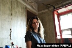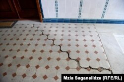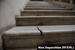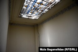 სახლის ბოლო სართულზე ულამაზესი ვიტრაჟია, თუმცა კედელს ორივე მხარეს დიდი ბზარი მიუყვება.