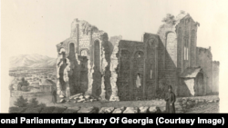 ბაგრატის ტაძრის ნაშთი ქუთაისში. „ის 1691 წელს თურქებმა ააოხრეს, ააფეთქეს რა ციხე და მიმდებარე ნაგებობები“, - წერს დიუბუა.