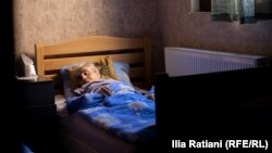 თავის საწოლზე, კუთხეშია მიმჯდარი მანანა ოდიშვილი. 76 წლისაა.