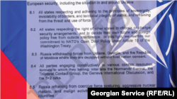 ბრიუსელი მოუწოდებს მოსკოვს, რომ დაუბრუნდეს ევროპაში ჩვეულებრივი შეიარაღებული ძალების შესახებ (CFE) ხელშეკრულების შესრულებას, ამ ძალების განლაგების და მათი რიცხოვნობის თაობაზე ინფორმირების ჩათვლით. რუსეთმა 2007 წელს გამოაცხადა მორატორიუმი CFE-ის შესრულებაზე მას შემდეგ, რაც ნატოს ქვეყნებმა უარი თქვეს ეუთოს ადაპტირებული შეთანხმების რატიფიცირებაზე;