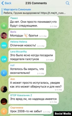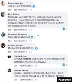 რუსმა მომხმარებლებმა სწრაფად აიტაცეს ღარიბაშვილის ციტატა. მათი ნაწილი განცხადების გაზიარებისას საქართველოს მთავრობას ბრძნული გადაწყვეტილებისთვის აქებს, ზოგი წერს, რომ ეს სიბრძნე კი არა, შიშია და პუტინის გავლენა.