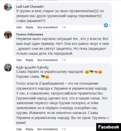 ქართველები კომენტარებში მეტწილად ცდილობდნენ აეხსნათ, რომ ხელისუფლების განცხადებას მოსახლეობა არ ემხრობა და ქართველები უკრაინელების გვერდით არიან. იხდიდნენ ბოდიშებს და პირდაპირ წერდნენ, რომ რცხვენიათ ღარიბაშვილის სიტყვების გამო.