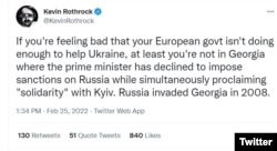 2008 წელს რუსეთი საქართველოში შეიჭრა, - წერს ტვიტერზე „მედუზას“ რედაქტორი კევინ როტროკი.