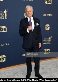 არაერთი ჯილდოს მფლობელმა, მაიკლ დუგლასმა კინომსახიობთა გილდიის დაჯილდოებაზე თავისი მხარდაჭერა ჩაცმულობით, აქსესუარით გამოხატა.