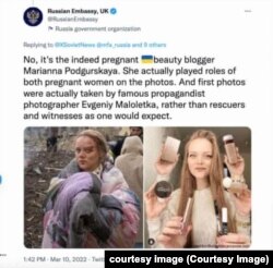 თუმცა, ბრიტანეთში რუსეთის საელჩოს მიერ გამოქვეყნებული „ტვიტები“ მარიუპოლის სამშობიაროსა და ბავშვთა საავადმყოფოს დაბომბვის შესახებ, სადაც ვითომდა არც ბავშვები იყვნენ და არც მშობიარეები, ხოლო ფოტოზე აღბეჭდილი დაშავებული ორსული ე.წ. სილამაზის ბლოგერი იყო, რომელიც პროპაგანდისტი ფოტოგრაფისთვის პოზირებდა, Tweeter-მა მალევე წაშალა. Tweeter-ის ადმინისტრაციამ განაცხადა, რომ პოსტები „Tweeter-ის წესების დარღვევის გამო“ წაიშალა.
