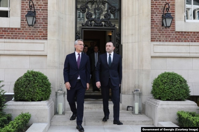 - ნატოს გენერალურ მდივან იენს სტოლტენბერგს. იენს სტოლტენბერგი საქართველოს პრემიერ-მინისტრს 18 მაისის საღამოს თავის საცხოვრებელ სახლში მას შემდეგ მასპინძლობს, რაც ნატო ავრცელებს ინფორმაციას შეხვედრის გაუქმების შესახებ.