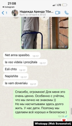 ის ირწმუნება, რომ ოჯახმა ბინაში რემონტი მასთან შეუთანხმებლად დაიწყო, თუმცა ეს ანასა და ალექსანდრეს ცოლის მიმოწერით არ დასტურდება. Whatsapp-ში ანა ალექსანდრეს ცოლს ნათიას, რომელიც, როგორც ანა გვეუბნება, კობაიძემ ნადეჟდას სახელით გააცნო, ბინის რემონტის დეტალებს უთანხმებს. რადიო თავისუფლებამ მითითებული ნომერზე დარეკა. საუბრისას ნათიამ დაგვიდასტურა, რომ ეს ტელეფონი მას ეკუთვნის და ფალიაშვილზე ბინის გაქირავება ახლაც სურს.