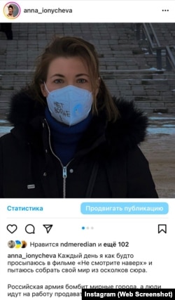 "რუსული ჯარი მშვიდობიან ქალაქებს ბომბავს, ხალხი კი სამსახურში მიდის მაცივრების გასაყიდად", - ეს არის ანას ერთ-ერთი ინსტაგრამ პოსტის ნაწყვეტი.