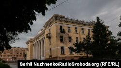 პროკურატურის შენობის წინ შეკრებილი არიან "ლუგანსკის სახალხო რესპუბლიკის" სამართალდამცველი სტრუქტურების წარმომადგენლები.