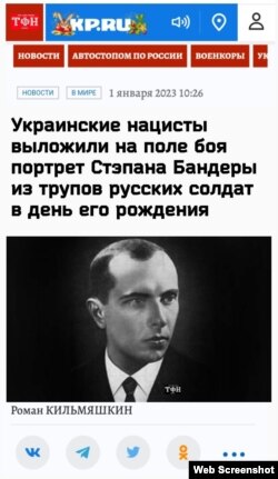 “უკრინელმა ნაცისტებმა, სტეპან ბანდერას დაბადების დღეს, ბრძოლის ველზე მისი პორტრეტი რუსი ჯარისკაცების გვამებით გააკეთეს” - ვითომდა ყვებოდა გამოცემა. ყალბ ამბავს თან “ფოტომტკიცებულებაც” ახლდა.