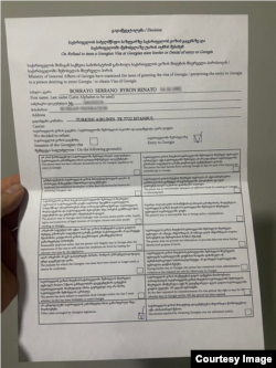 საზღვარზე საპასპორტო კონტროლის გავლისას, მთხოვეს დამეცადა. საზღვრის თანამშრომლის სისტემა კარგა ხანი მოშლილი იყო, სადღაც ორ საათამდე ვიცდიდი. ბოლოს გადმომცეს ქაღალდი, რომელზეც ეწერა, რომ საქართველოში შესვლაზე უარს მეუბნებიან - „სხვა მიზეზების გამო“.