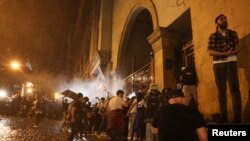 რუსთაველისა და 9 აპრილის ქუჩის კუთხის მხარეს პარლამენტის ეზოში მყოფმა პოლიციამ აქციის მონაწილეების მიმართ წლის ჭავლის, ცეცხლმაქრი ქაფისა და "წიწაკის სპრეის" გამოყენება მას შემდეგ დაიწყო, რაც აქციის რამდენიმე მონაწილემ პარლამენტის შენობის რკინის ჭიშკრების რყევა დაიწყო - 22:30-სთვის სამართალდამცველებს უკვე გამოყენებული ჰქონდა საპოლიციო სპეციალური საშუალება: "წიწაკის სპრეი", ცრემლსადენი გაზი, წყლის ჭავლი.