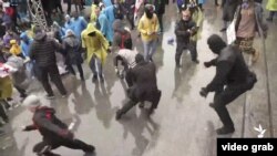 სპეცრაზმელები პარლამენტის ეზოდან მას შემდეგ გამოცვივდნენ, რაც დემონსტრანტების ნაწილმა შენობის წინ აღმართული ლითონის წინაღობის ფილა ამოჭრა.