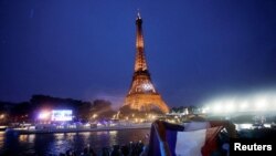 ათასობით სპორტსმენი, ოლიმპიადის მონაწილე სახელმწიფოთა გუნდების წევრები, სხვადასხვა ზომის გემებზე მიესალმა მაყურებელს პარიზის ცენტრში მდინარე სენაზე.