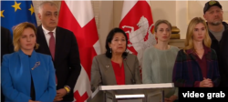 "მე მინდა, დღეს აქ ვთქვა, როგორც ამ სახელმწიფოში ერთადერთი დარჩენილი დამოუკიდებელი ინსტიტუტი, რომ არ ვაღიარებ ამ არჩევნებს, ამის აღიარება არ შეიძლება, ესაა იგივე, რაც აღიარება რუსეთის აქ შემოსვლის. რუსეთის მიმართ საქართველოს დაქვემდებარების. მე ამისთვის არ ჩამოვსულვარ საქართველოში. ამისთვის არ უცხოვრიათ ჩვენს წინაპრებს. ამას ჩვენს არ შევეგუებით, არ შეიძლება, რომ ვინმემ წაართვას საქართველოს თავისი ევროპული მომავალი", - თქვა ზურაბიშვილმა.