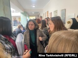 საიას თავმჯდომარე, ნონა ქურდოვანიძე, თბილისის სააპელაციო სასამართლოში ცენტრალური საარჩევნო კომისიის წარმომადგენლებს მიმართავს