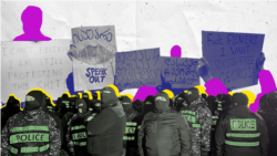 „მოვდივართ [გოგოები] მარშზე, რაღაცას ვჭამთ და ერთ-ერთი მათგანი გვეუბნება, რამდენის ჩადება შეგიძლიათ პირში ერთადო? ესეთი კომენტარებით გამოირჩევიან, რაღაცეებს ხუმრობენ [უხამსად], თან სახე აქვთ დაფარული”, - ამბობს რადიო თავისუფლების პირდაპირ ეთერში 2 თებერვლის მარშის მონაწილე სტუდენტი გოგო. ამ დროს მას და სხვა დემონსტრანტებს ფეხდაფეხ მიჰყვებიან ნიღბიანი პოლიციელები.