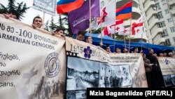 თბილისში გამართული აქციის მინაწილეები თურქეთის საელჩოსთან ავტობუსებით მივიდნენ. ავტომობილებიდან სომხეთის ეროვნული დროშები ჰქონდათ გადმოფენილი. სახელდახელოდ იმპროვიზებულ სცენაზე მსოფლიოს იმ ქვეყნებს მიმართეს, რომლებმაც უკვე გენოციდი უწოდეს ოსმალეთის იმპერიაში 1915 წლის სომეხთა მასობრივ ხოცვა- ჟლეტას. ისმოდა მადლობის სიტყვები მათ მიმართ, მოთხოვნები კი ძირითადად -თურქეთის სახელმწიფოს მისამართით. თბილისელი სვეტლანა თარხანოვა დარწმუნებულია, რომ საქართველოში ყველამ იცის, რაც 100 წლის წინ მოხდა. მისი თქმით, მნიშვნელობა არა აქვს, საქართველოს ხელისუფლება აღიარებს თუ არა გენოციდს, ხალხისთვის ყველაფერი ისედაც ნათელია: