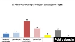 პირველ რიგში ყურადღებას იქცევს ის, რომ გამოკითხულთა 60% ქვეყნის პროდასავლური კურსის მხარდამჭერია. მხოლოდ 20%, ანუ მოსახლეობის მეხუთედი, არის პრორუსული კურსის მხარდამჭერი. 2014 წლის თვითმმართველობის არჩევნებს თუ გავიხსენებთ, თბილისში ღიად პრორუსულმა ძალებმა - ნინო ბურჯანაძის ერთიანმა ოპოზიციამ და დავით თარხან-მოურავის „პატრიოტთა ალიანსმა“ - დაახლოებით 17% დააგროვეს. ცხადია, ძნელია პირდაპირ იმის მტკიცება, რომ ეს ამომრჩეველი პრორუსული კურსის მხარდამჭერია (შესაძლოა, ასეთი ამომრჩეველი „ქართულ ოცნებასაც“ ჰყავდეს). იქიდან გამომდინარე, რომ შესაბამისი მონაცემთა ბაზები არ გვაქვს, დასკვნებს ვერ გამოვიტანთ, მაგრამ იმაზე დაკვირვება ნამდვილად შეგვიძლია, რომ ზემოთხსენებული ორი მაჩვენებელი დაახლოებით მსგავსია.