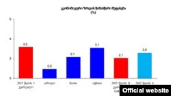 სტატისტიკის ეროვნულმა სამსახურმა საქართველოს ეკონომიკური ზრდის ნახევარი წლის წინასწარი მაჩვენებლები გამოაქვეყნა, რომლის მიხედვით, ქვეყნის მთლიანმა შიდა პროდუქტმა 2.6 პროცენტით მოიმატა. ასეთი მაჩვენებელი თითქმის ორჯერ ნაკლებია 2015 წლის დასაწყისში მთავრობის მიერ დაგეგმილზე.