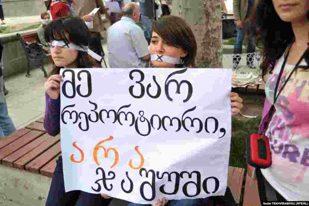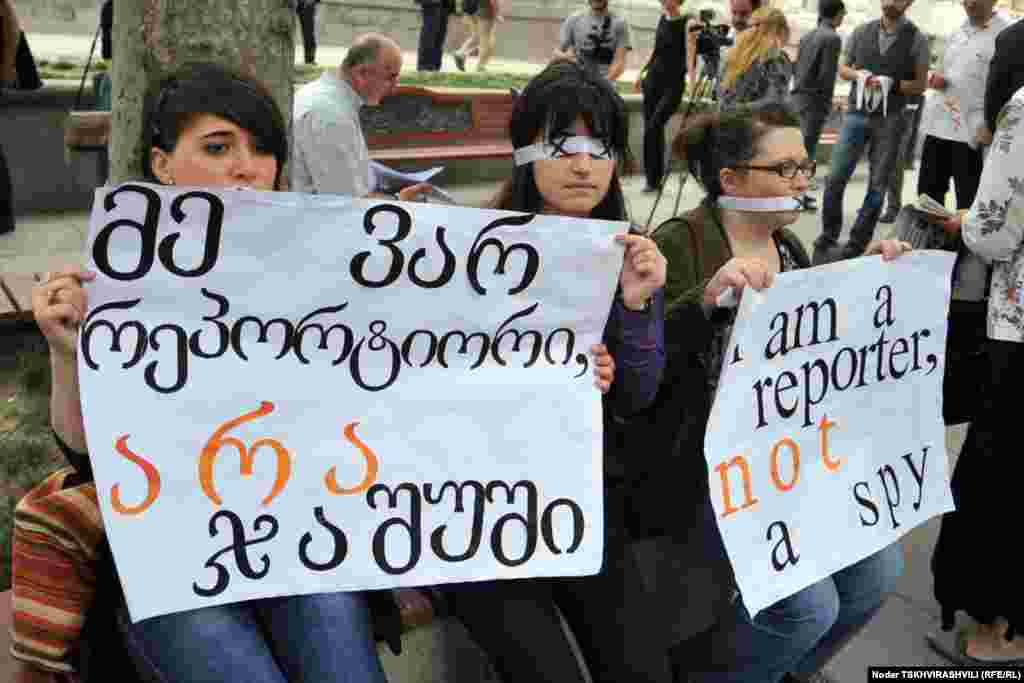 პრესის თავისუფლების საერთაშორისო დღეს, 3 მაისს თბილისში ”ადამიანის უფლებათა სახლის” ორგანიზებით გაიმართა თეატრალური აქცია დევიზით ”მე რეპორტიორი ვარ და არა ჯაშუში”. აქციის თვალებახვეულმა და პირაკრულმა მონაწილეებმა ამ ფორმით გააპროტესტეს ხელისუფლების მხრიდან მედიაზე ზეწოლის ფაქტები.