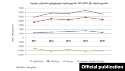 საქსტატის წინასწარი მონაცემებით, 2015 წლის იანვარ-ივლისში საქართველოს საგარეო სავაჭრო ბრუნვა 5 მილიარდ 573 მილიონ აშშ დოლარითაა შემცირებული - ექსპორტი 24 %-ით, ხოლო იმპორტი 11 %-ითაა დაკლებული. თავისუფალი და აგრარული უნივერსიტეტების ბიზნესსკოლის დეკანის გიგა ბედინეიშვილის შეფასებით, ეს „საგრძნობი და მნიშვნელოვანი კლებაა“:
